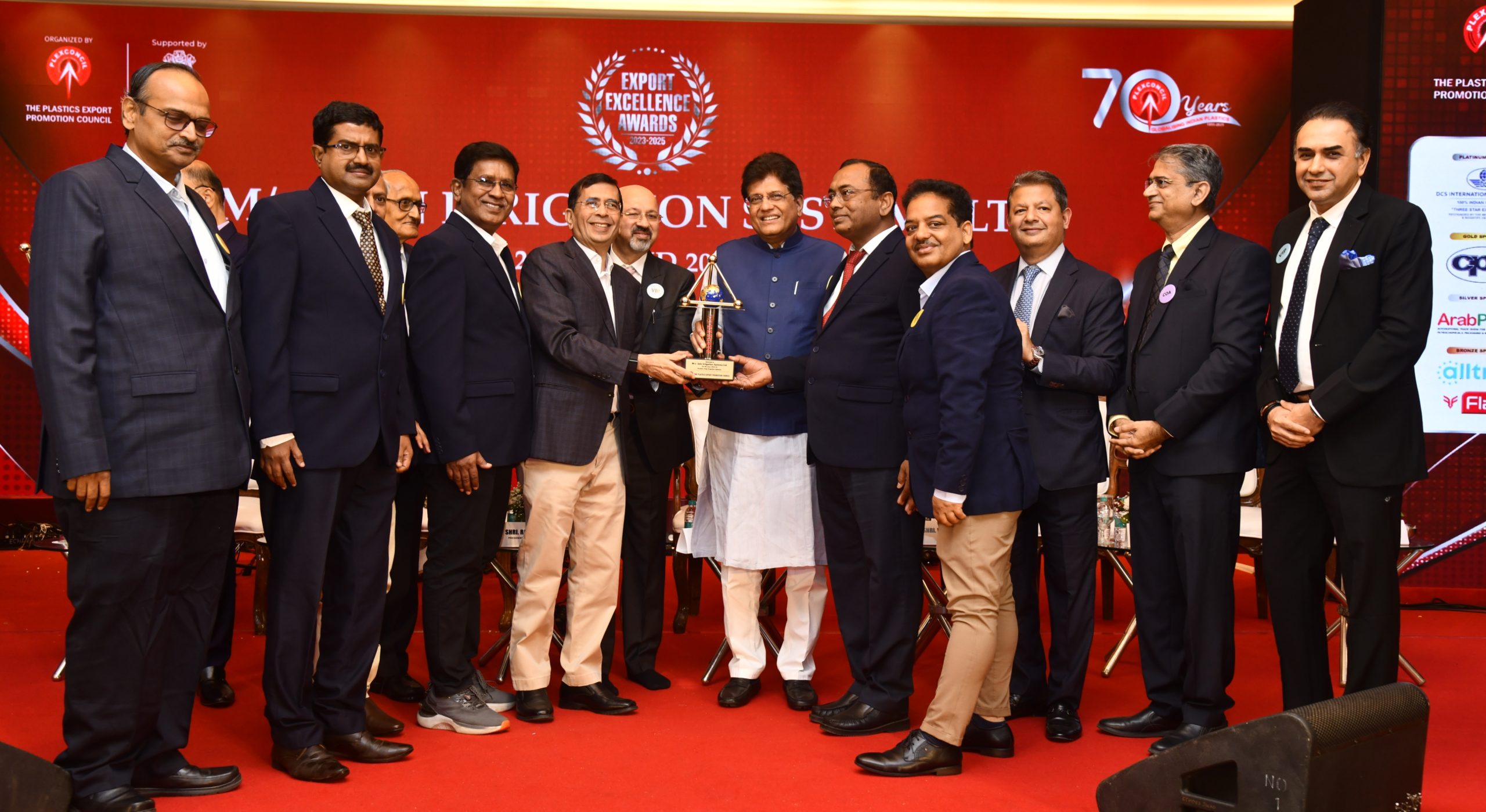 ड्रीप इरिगेशन, पीव्हीसी फोमशीट फिटींग व होजेस विभागास निर्याती बद्दल झाला सन्मान